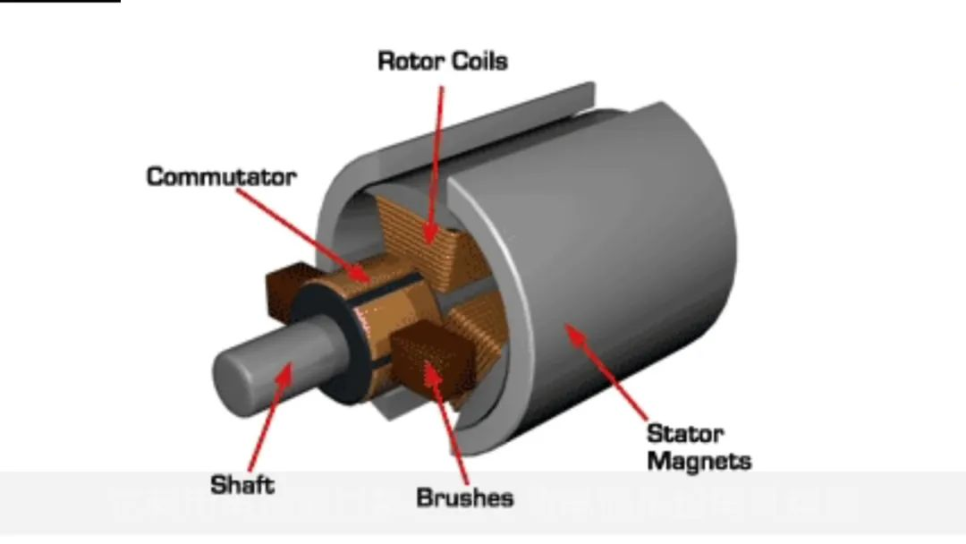 有刷直流電機是很簡單的直流電機, 它利用電刷通過機械換向將電流傳給電機繞組。電樞或轉子是電磁體,磁場是永磁體。這種電機無需控制器來操作或改變速度,低速時能提供極大扭矩。缺點是結構笨重、效率低、電刷會生熱并導致效率低下,熱量在轉子中心而難以消掉。 因此,有刷直流電機已不再用于電動汽車。
